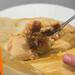 - Coloca una porción de masa sobre la hoja, extiende, añade el relleno al centro y cierra envolviendo. Continúa con este procedimiento hasta terminar con la masa y el relleno.