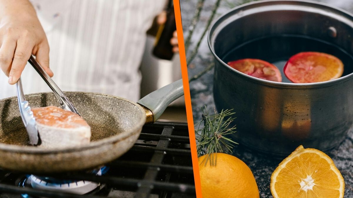La buena noticia es que existe una solución natural, efectiva y muy usada en cocinas profesionales: una infusión caliente de especias y cítricos que neutraliza los olores en lugar de cubrirlos.