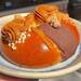 La costra tiene un sabor como el de la concha de vainilla y de chocolate, lleva crumble de nuez y nueces en mitades, azúcar granulada, dulce de leche y naranjas cristalizadas hechas en casa.