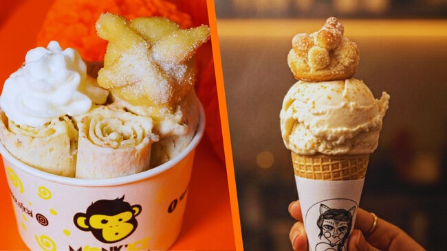 Si prefieres la experiencia del helado en rollo (preparado al momento sobre una plancha fría), Monk'Ice tiene una propuesta única. Ofrecen variaciones interesantes como helado de pan de muerto con matcha o con guayaba y lechera, con Conejito Turin, Cajeta y nuez y Chocolate Abuelita. Son una excelente opción para quienes buscan probar el sabor con un twist o una base más ligera.