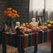 Aprovecha la decoración para hacer tu altar de muertos en casa pequeña más vistoso. Guirnaldas, papel picado en miniatura o pequeños detalles colgantes son elementos que no ocupan espacio y aportan color. Si quieres, puedes usar recipientes pequeños para alimentos o velas, evitando piezas grandes que limiten la vista de otros objetos importantes.